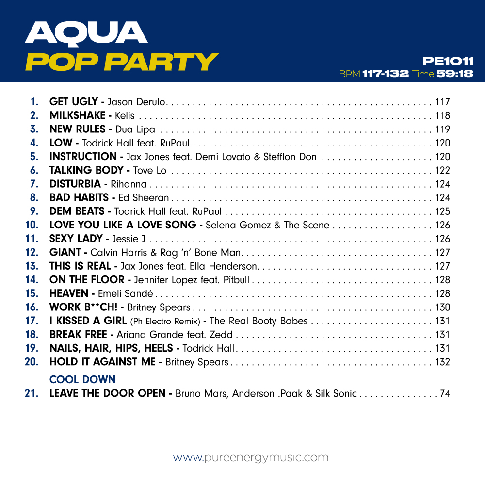 | 22 | Aqua Pop Party (Continuous Mix) | Pure Energy | 117-132 | 1:03:24 |