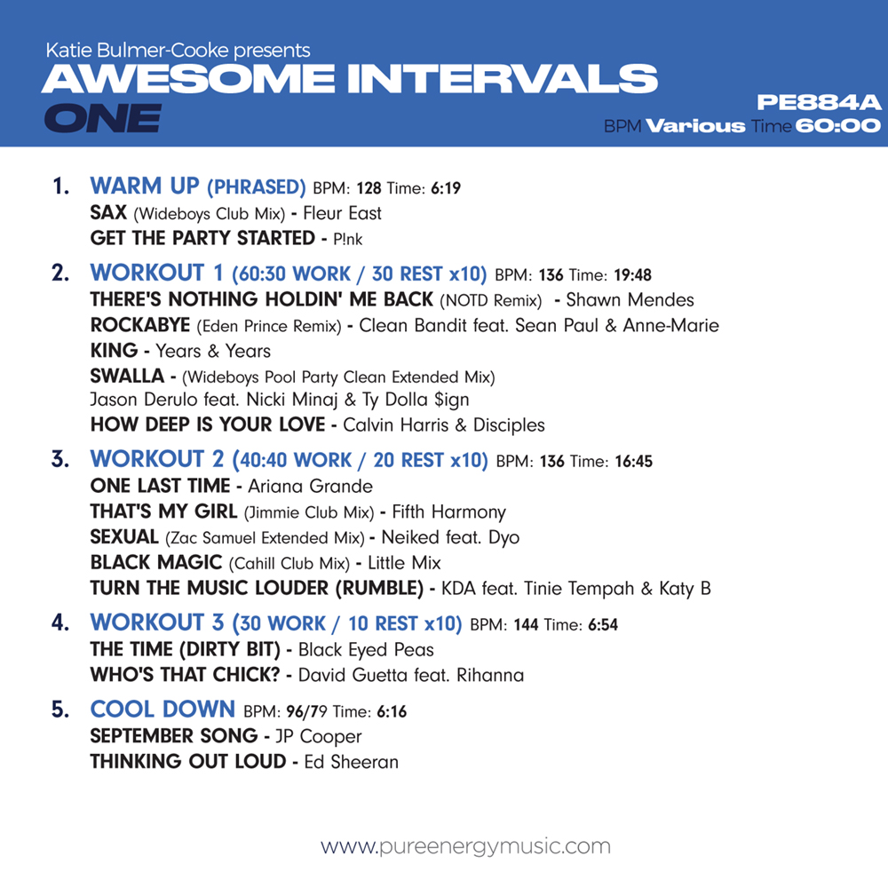 This album is taken from the back catalogue Pure Energy Awesome Intervals double album release, and it contains original artist music, meaning you must have the appropriate music licences in place to play it in public or online.
