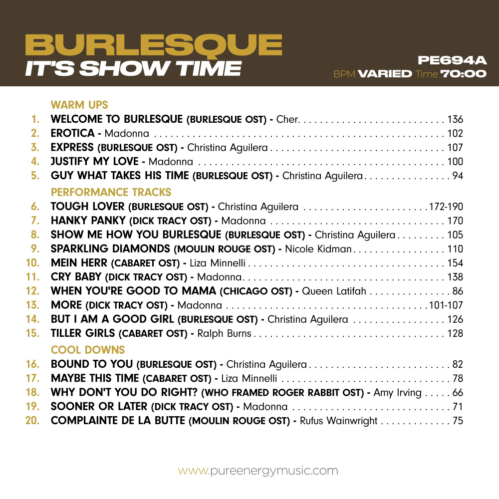 This compilation release is perfect for all things Burlesque with standalone tracks ideal for warm up, technique breakdowns and performance tracks that are a great crowd pleaser!