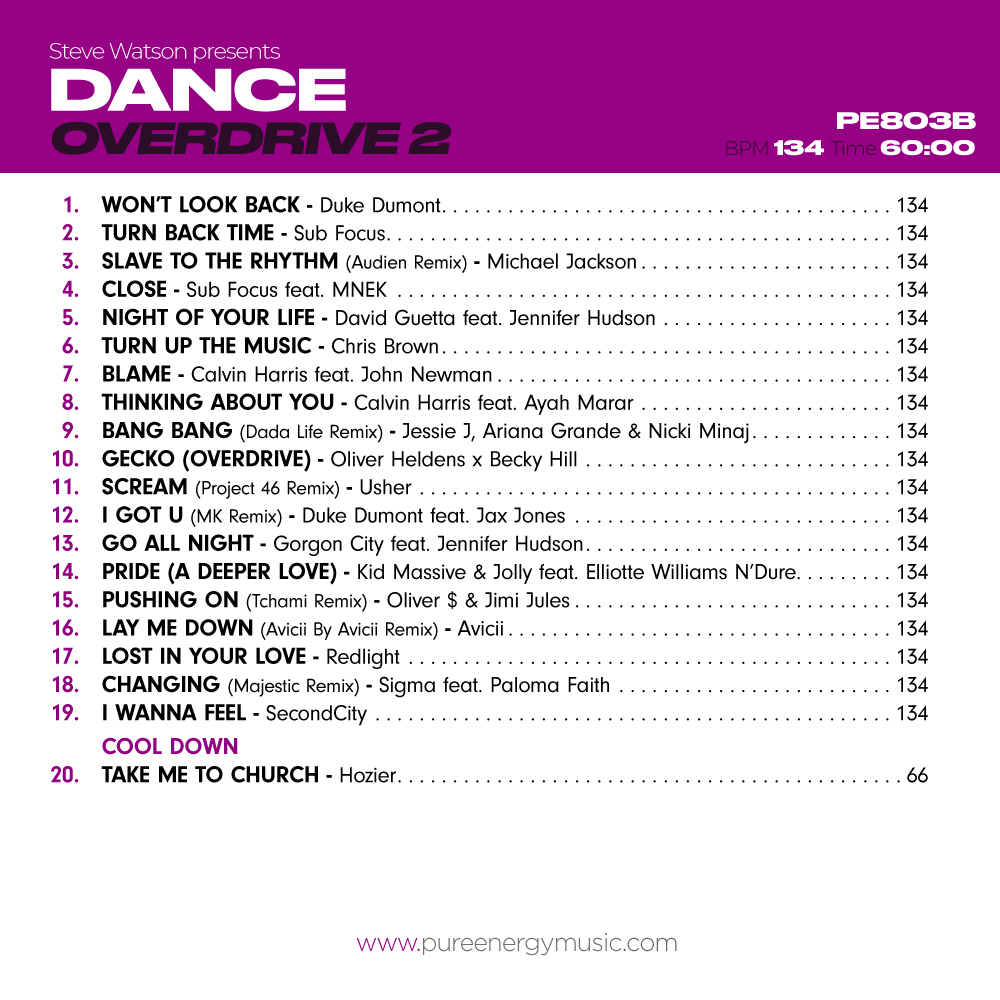 | 21 | Dance Overdrive 2 (Continuous Mix) | Pure Energy | 134 | 1:04:09 |