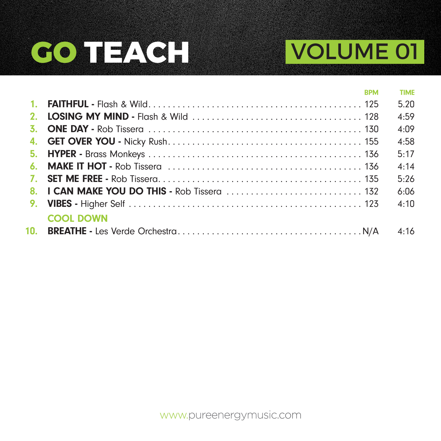 GO Teach features some of the best pop and disco style tracks from the Pure Energy GO range, and as the music is licence free, meaning you can use it online and in any venue with no additional licence fees to pay, and you won’t get muted or taken down.