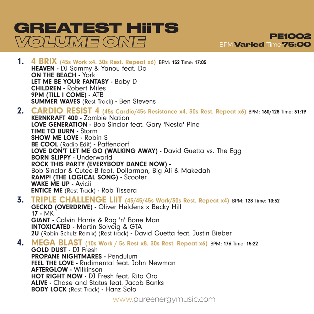 Greatest HiiTs Volume 1 from Pure Energy is the ultimate HiiT workout featuring the biggest tracks of the last decade!