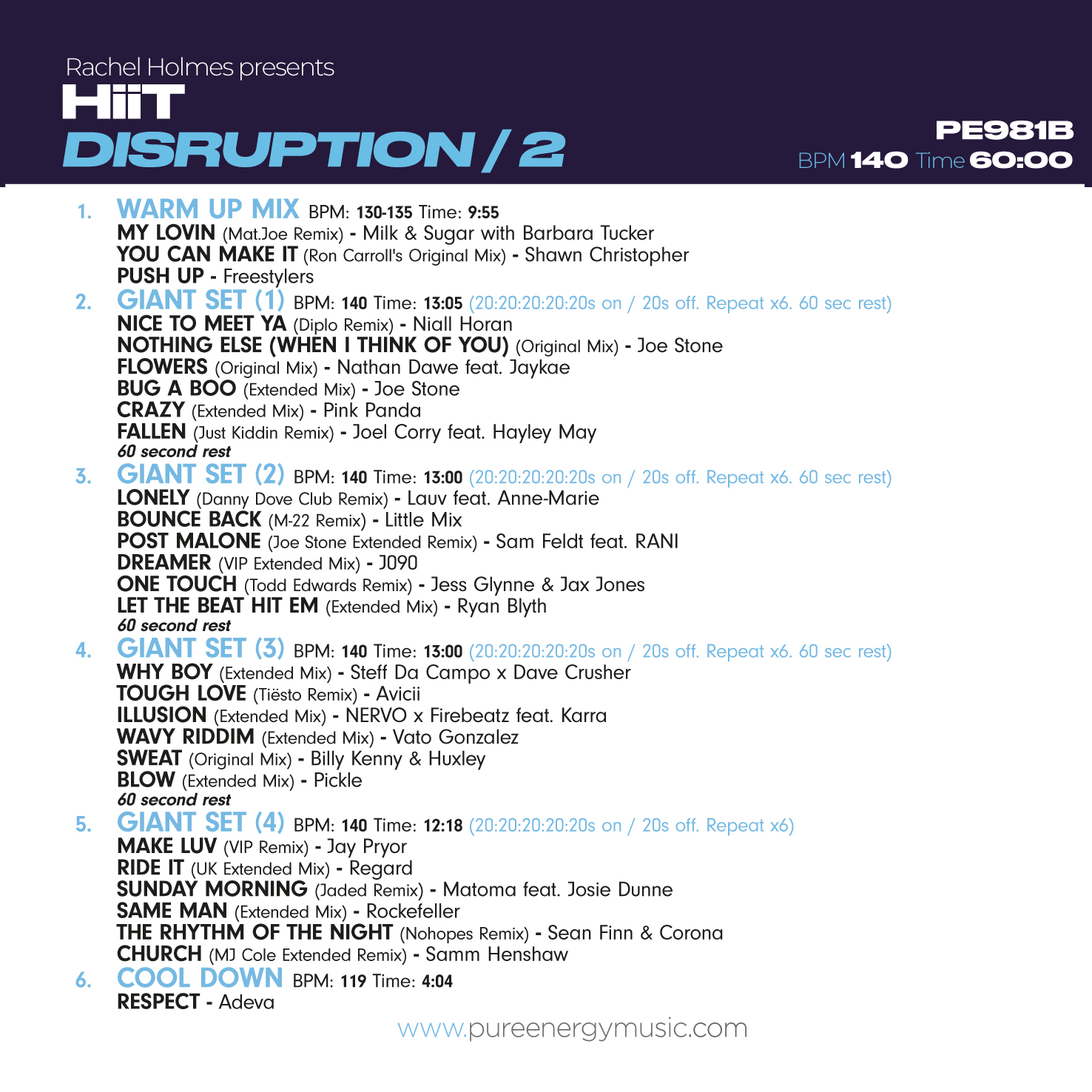 | 2 | HiiT Disruption 2 - Giant Set (1) | Pure Energy | 140 | 13:05 |