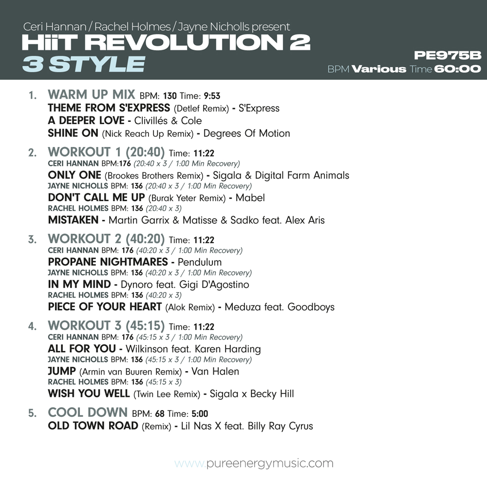 | 3 | HiiT Revolution 2: 3 Style - Workout 2 (40:20) | Pure Energy | 176/136 | 11:22 |