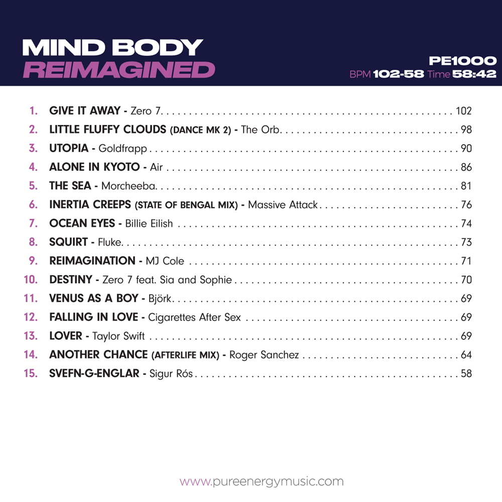Mind Body Reimagined is a downtempo contemporary mix of original artist tracks, perfect for a range of Mind Body disciplines.