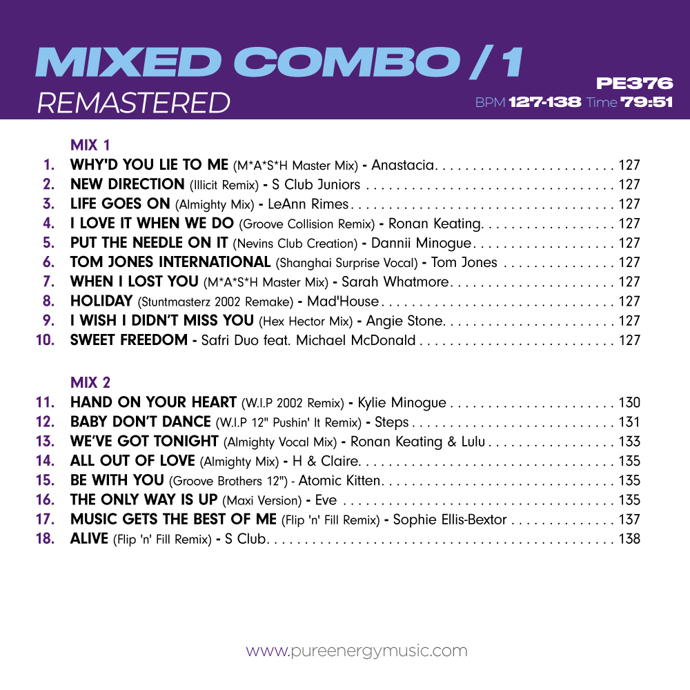 Mixed Combo 1 has been carefully remastered and is back to bring you the best of the early 00s.