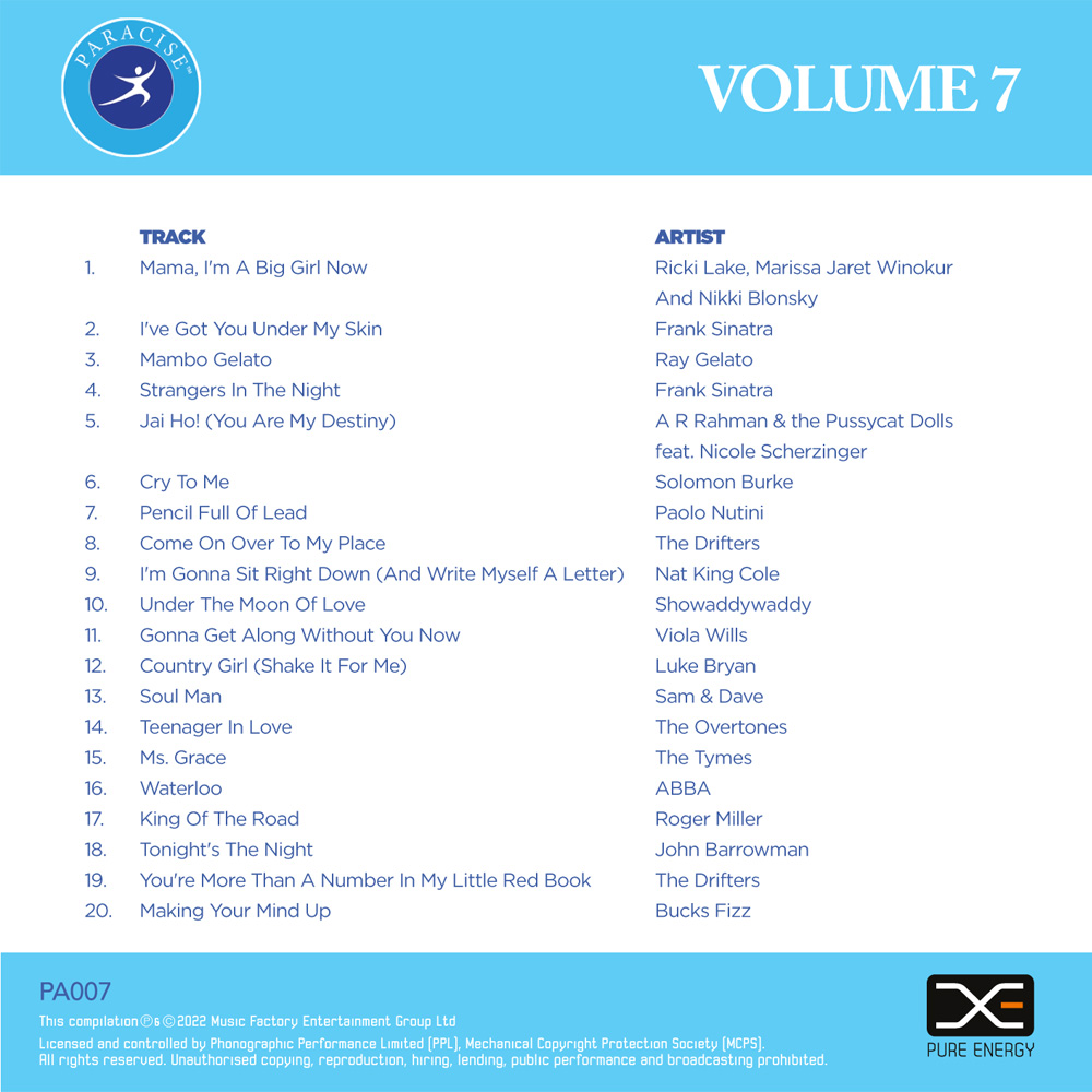 Paracise Volume 7 is available to licensed Paracise instructors. Please visit www.paracise.com for more information. This album features original artist music, meaning you must have the appropriate music licences in place to play it in public or online. is available to licensed Paracise instructors. Please visit www.paracise.com for more information. This album features original artist music, meaning you must have the appropriate music licences in place to play it in public or online.