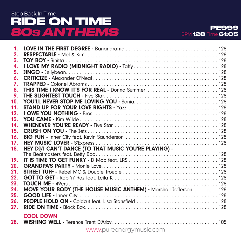 Ride On Time is the ultimate 80s fitness music mix, brought to you by Pure Energy!