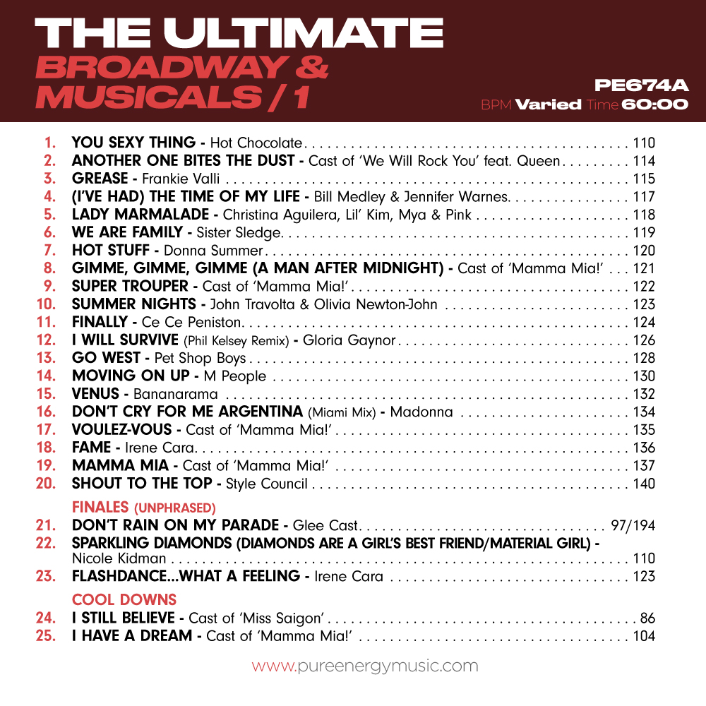 Starting at 110bpm and rising to 140bpm this really is an uplifting, feel-good soundtrack for the ultimate Broadway experience!